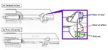 The CPW is a modular selective fire lever-delayed blowback operated weapon (using what STK calls a cam recoil mitigation mechanism), which contributes to the low felt recoil and allows for use with high pressure ammunition. The weapon has a conventional submachine gun layout with the magazine housed in the pistol grip. The pistol grip's backstrap and the 30-round magazine are molded from a translucent plastic which allows the shooter to quickly verify the remaining level of ammunition visually.[1] The receiver is machined from a lightweight aluminum alloy and most of the other components are made of a high-strength polymer to further reduce weight and costs.[4][5][6]