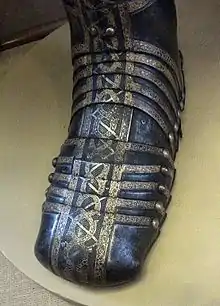 "Sabaton" is also the name of a type of broad-toed Flemish shoe, popular in the Late Middle Ages.[2]