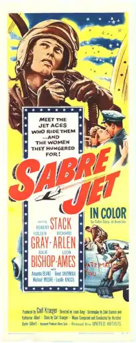 Sabre Jet is a 1953 American drama war film set during the Korean War, directed by Louis King and starring Robert Stack, Coleen Gray, Richard Arlen, Julie Bishop and Leon Ames. It was shot in Cinecolor using United States Air Force footage. Sabre Jet was based on a story by the producer Carl Krueger with the screenplay written by the husband and wife playwright and screenwriting team of Dale Eunson and Katherine Albert. The opening credits state: "This picture is dedicated to the air force wives who shared their men with a world made desperate by the most brutal aggressor in history."