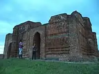 Kherur Mosque is located on the top of a mound at Kherur in Sagardighi. The 15th century mosque, spread over an area of 2 acres (0.81 ha), was built by Rafat Khan during the reign of Sultan Hussain Shah. The mosque is rectangular in shape. There is a domed prayer chamber. The mosque has four minarets at four corners.[3][50]