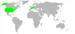 ![]() Map of Participating Sailing Countries at the 1900 Summer Olympics ● Green = Participating for the first time |