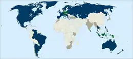 Blue: Water Gray: Never participated in OG Dark Gray: Participated in earlier OG Green: Country participated for the first time Dark Blue: Country participated also on previous games Red: Country boycotted the sailing event of the OG |