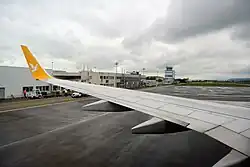 Saint-Étienne–Bouthéon Airport or Aéroport de Saint-Étienne–Bouthéon (IATA: EBU, ICAO: LFMH) is an international airport serving the French city of Saint-Étienne. It is located in Andrézieux-Bouthéon, 12 km north-northwest of Saint-Étienne,[1] within the département of Loire in the Rhône-Alpes région and mainly used by low-cost airlines.