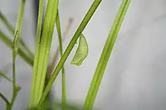 Adults live an average of three to four days. The subspecies is bivoltine, having two mating events per year. The first flight period occurs from late May to early June, and the second from late July to mid-August. Females deposit eggs individually or in small clusters that emerge as larvae in seven to ten days.[4] Caterpillars that emerge in early summer period form a chrysalis after two months, while those that emerge in late summer period hibernate over winter and pupate the following spring. Pupation may take up to two weeks. There is little historical information on the life history of the butterfly. Because of this, current research is being done at Michigan State University[9] and North Carolina State University[7] to better understand the butterfly's role in its ecosystem.