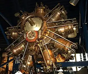 The Salmson B.9 was a French designed, nine-cylinder, water-cooled radial aero engine that was produced under license in Britain. The engine was produced between August 1914 and December 1918. The French version was designated 9B with a slightly increased capacity variant known as the R.9 or 9R.[1] A further variant known as the M.9 or 9M unusually drove the propeller through a 90-degree gear train.[2]