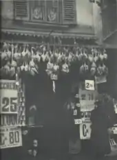 The salumeria originated in Italy and dates to the Middle Ages.[1][7] Historically, salumerias in Bologna, Italy, did not produce their own meats.[1] They selected meats and other products such as pasta, olives and cheeses from local purveyors.[1] These purveyors worked in a guild system that was created by the signori in Bologna, the city's rulers, in a system that dates to the Middle Ages.[1] Purveyors for salumeria products included the salaroli, which controlled the salt industry, who salted the pork, which was then shipped to the lardaioli, a guild that sold the pork.[1] The lardaioli also produced soap and candles from the pork lard they would receive.[1] This guild system was eliminated by Napoléon Bonaparte around the time of the turn of the 19th century.[1]