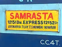 The 12151 / 12152 Lokmanya Tilak Terminus–Howrah Samarsata Express is a Superfast Express train belonging to Indian Railways – Central Railways zone that runs between Lokmanya Tilak Terminus and Howrah Junction in India. It is named after Samarasta Festival held in Nagpur