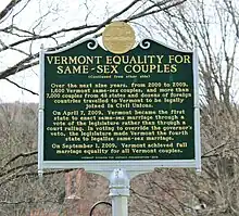 - ↑ "Same-sex marriages begin in Vermont". NBC News. September 1, 2009.
