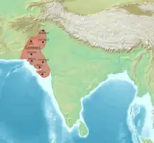Territorial influence of the Samma tribe in late 13th century, highlighted in red.