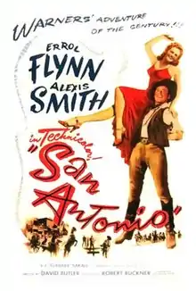 San Antonio is a 1945 American Western film starring Errol Flynn and Alexis Smith. The film was written by W. R. Burnett and Alan Le May and directed in Technicolor by David Butler as well as uncredited Robert Florey and Raoul Walsh.
