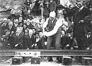 - November 15, 1919: The "golden spike" is driven and construction of the SD&A is completed at a cost of $18 million (three times the original estimate).[2]