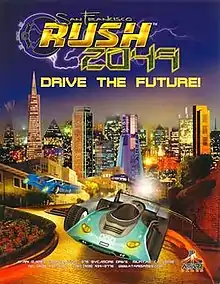San Francisco Rush 2049 is a racing video game developed and manufactured by Atari Games for arcades. It was ported to the Nintendo 64, Game Boy Color, and Dreamcast by Midway Games West. The arcade machine was released in 1999; home versions followed in 2000 on September 7 for North America and November 17 for Europe. It is the third game in the Rush series and the sequel to San Francisco Rush: Extreme Racing and Rush 2: Extreme Racing USA. It is the last game in the Rush series to be set in the city of San Francisco and the last released on a Nintendo console. It also serves as the final game for the Atari Games label, which was retired shortly after the arcade release. The Dreamcast version was later re-released as part of Midway Arcade Treasures 3 for the PlayStation 2, Xbox, and GameCube and later for Windows as part of Midway Arcade Treasures Deluxe Edition.