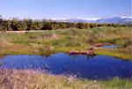 These soils are used for irrigated crops, such as wheat, rice, figs, almonds, oranges, and grapes, and for pasture and urban development. San Joaquin soils formed in old alluvium on hummocky topography. A cemented hardpan a few feet beneath the surface restricts roots and water percolation.[2] San Joaquin soils are classified in USDA soil taxonomy as fine, mixed, active, thermic abruptic durixeralfs.[3]