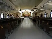 Available records tell that present-day Floridablanca started as the Hacienda de San Jose de Calumpaui and had its own chapel since 1823.[1] By 1867, a petition was signed to move the town center to its current site. The petition was approved in November of the same year and the formal inauguration of the town followed in January 1879.[2] In 1887, Father Luciano Morros Ylla built the church and convent. Several renovations were done into the church structure before and after the turn of the century: Father Rodriguez Prado rebuilt the convent of stone and wood in 1893; Father Elifio Aparicio reinforced the church with concrete in the early quarter of the 20th century. The church became a casualty of the World War II, with only the walls withstanding the bombing of 1945. It was said that Father Francisco Mozo died as the bell tower collapsed above him during the impact. The parish was renovated and enlarged in 1967.[2][3]