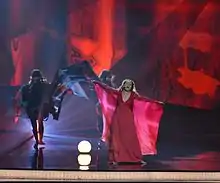 After a two-year absence from the contest, San Marino returned in 2011 with Italian singer Senit performing "Stand By", which failed to take the nation to the final.[14] From 2012 to 2014, the nation sent Valentina Monetta to the contest on three consecutive occasions, which made her the first singer to participate in three consecutive contests since Udo Jürgens, who competed in 1964, 1965 and 1966 for Austria.[15] Monetta's entries in 2012 ("The Social Network Song") and 2013 ("Crisalide (Vola)") respectively failed to qualify San Marino for the final. However, in 2014, Monetta managed to bring the nation to the final for the first time, where she placed 24th with the song "Maybe".[14]