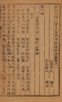 Sanbao taijian xiyang ji (traditional Chinese: 三寶太監西洋記; simplified Chinese: 三宝太监西洋记), also translated into English as The Eunuch Sanbao's Voyage to the Western Ocean[1] or The Journey of Sanbao the Eunuch to the Western Ocean,[2] is a classic Chinese novel written by Luo Maodeng (羅懋登) in the late 16th-century during the Ming dynasty. It consist of 100 chapters and is set in the early 15th-century. The novel is about the voyages of admiral Zheng He. However, instead of a realistic chronicle of Zheng He's journeys, the novel is a blend of "factual" and "fantastic narrative"[1] akin in style to the shenmo novels of the same period.