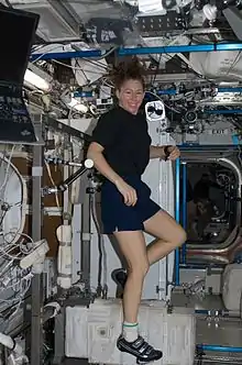 Sandra Hall Magnus (born October 30, 1964) is an American engineer and a former NASA astronaut.[2] She returned to Earth with the crew of STS-119 Discovery on March 28, 2009, after having spent 134 days in orbit.[3] She was assigned to the crew of STS-135, the final mission of the Space Shuttle. She is also a licensed amateur radio operator with the call sign KE5FYE. From 2012 until 2018 Magnus was the executive director of the American Institute of Aeronautics and Astronautics.