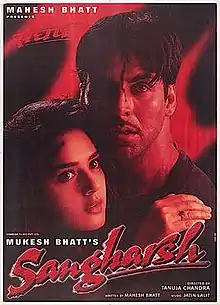 Sangharsh (transl. Struggle) is a 1999 Indian Hindi-language psychological horror thriller film directed by Tanuja Chandra. It stars Akshay Kumar, Preity Zinta, and Ashutosh Rana. Alia Bhatt, who would later be an established Bollywood actress in the 2010s, made a cameo in this film, playing the younger version of Zinta's character. The film was said to be based on the 1991 film The Silence of The Lambs, but Chandra rejected this, claiming the film was based on a similar lost police case in India.[2][3] The film opened to positive reviews, with critical acclaim for the performances by Kumar and Zinta, as well as Rana's villainous turn.[4][5]
