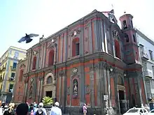 The church is located in the core of the ancient Greek-Roman city: it takes its name from the Egyptian Nile, which was venerated here by the Egyptian merchants. It was begun in 1385 as a chapel, dedicated to Sts. Angel and Mark, by will of cardinal Rainaldo Brancacci, whose family had a palace nearby. The current appearance dates from a 1709 rebuilding, under the direction of Arcangelo Guglielmelli. Remains of the original Catalan-Gothic structure include the main portal, with an architrave featuring angels, and a fresco in the lunette with The Virgin Mary and Saints Michael and Baculus with Cardinal Brancaccio (15th century). A sculpture of St. Michael from another portal has been moved in the interior.