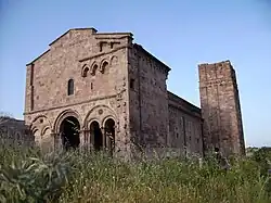 The Basilica di Sant'Antioco of Bisarcio is a countryside church near Chilivani, a frazione of Ozieri, Sardinia, Italy. Located on an isolated volcanic hill, it is one of the largest Romanesque churches in Sardinia.