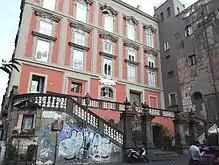 The present 18th-century facade was built at the same time as the building's large two-ramp staircase. After a recent restoration, the building was purchased by the University of Naples Federico II. From January 26th, 2009, it became the location for BRAU, the humanities research library of the university.