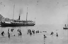 By the end of the 19th century, the island was almost uninhabited except for a few cattle herders. The first owner to try to develop Avalon into a resort destination was George Shatto, a real estate speculator from Grand Rapids, Michigan. Shatto purchased the island for $200,000 (equivalent to $5.7 million in 2022[12]) from the Lick estate at the height of the real estate boom in Southern California in 1887.[13] Shatto created the settlement that would become Avalon, and can be credited with building the town's first hotel, the original Hotel Metropole, and pier.[13] Despite Shatto's efforts, he defaulted on his loan after only a few years and the island went back to the Lick estate.[1] The sons of Phineas Banning bought the island in 1891 from the estate of James Lick. The Banning brothers fulfilled Shatto's dream of making Avalon a resort community with the construction of numerous tourist facilities. On November 29, 1915, a fire burned half of Avalon's buildings, including six hotels and several clubs. In the face of huge debt related to the fire and the subsequent decline in tourism due to World War I, the Banning brothers were forced to sell the island in shares in 1919. On May 10, 1912 Glenn L. Martin flew a homemade seaplane in to Avalon, setting records for distance and time.[14] In 1917 the Meteor Company purchased the Chinese pirate ship Ning Po, the oldest pirate ship afloat, built in 1753, and towed her to the Isthmus of Catalina Island for use as a tourist attraction and restaurant, until destroyed there by fire in 1938.[15][16]