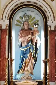 On the south side, on the external wall of the church, there is a wayside shrine with a statue of the Virgin and Child, called Madonna del buon viaggio an Ebron (that is Madonna of the Good Trip to Ebron). In June 2015 it was subject of an act of sacrilege, in fact they broke an arm of the child Jesus and took it away.
