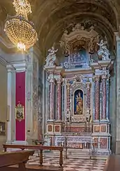 In the meantime, the interior of the church was enriched: the altar of Santa Maria in Silva was built to replace the previous wooden altar, increasing the depth of the chapel in order to have more space, completing the work in 1726.[58] Meanwhile, in 1735 the two large wooden chancels were rebuilt and installed, incorporating the painted cartouches that already adorned the previous chancels. The reason for the rebuilding, however, is not known.[59] The church, at this point truly completed, was to know within a few years a great tragedy.