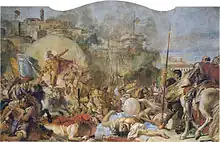 Giandomenico Tiepolo's work, in addition to the vault of the presbytery, also includes the two perimeter walls below, where the painter places two large frescoes centered on fundamental scenes of the cult of the titular saints: the Martyrdom of Saints Faustinus and Jovita and the Intervention of the patron saints in defense of Brescia besieged by Nicolò Piccinino. The former depicts, precisely, the instant when the two saints were martyred, just outside the city walls; the latter depicts the appearance of the two saints on the Roverotto terraces during the 1438 siege, which put the Milanese army led by Niccolò Piccinino to flight.