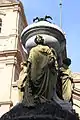 Several plates recall the procession held in 1922, including one that replicates a photograph of the crowd coming from the Plaza de Mayo in front of the Cathedral. A particular plate contains the text of the decree signed on 10 October 1926 by President Marcelo Torcuato de Alvear, allowing display the flag of War of Argentina with this image of Our Lady of the Rosary.