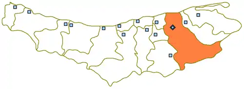 Sari (Persian: ساری, romanized: Sâri [sɒːˈɾiː] ⓘ); also romanized as Sārī), also known as Shahr-e-Tajan and Shari-e-Tajan,[3] is a city in the Central District of Sari County, Mazandaran province, Iran, serving as capital of the province, county and district.[4] Sari was the former capital of Iran for a short period and is in the north of the country, between the northern slopes of the Alborz Mountains and southern coast of the Caspian Sea. Sari is the largest and most populous city of Mazandaran.