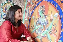 Dr. Sarika Singh is perhaps the first Indian female master painter and teacher in the Buddhist tradition of Thangka Painting.[2][3] Born on 13 August 1976, in New Delhi, she began her studies in the art of Thangka painting, in 1996, at the prestigious Norbulingka Institute in Dharamshala, Northern India under the tutelage of her master, Tempa Choephel. In the year 2015, she completed her Master’s degree in ‘Buddhist and Tibetan Studies’ from Punjab University, and ‘PhD’ from Central University of Himachal Pradesh in the year 2021.