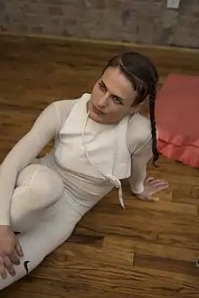 Knoop, who identifies as gender non-conforming,[6] has shown and performed at the Whitney,[7] MoMA,[8] the ICA Philadelphia, the Leslie-Lohman Museum,[9] Movement Research,[10] and Essex Flowers gallery.[11] They have collaborated and performed live with artists such as Simone Forti,[12] A.K. Burns,[13] Math Bass and Lauren Davis Fisher,[14] Gordon Hall,[15] Geo Wyeth,[16] Nica Ross, Nicole Killian, Jules Gimbrone,[17] Niv Acosta, Elizabeth Orr, Robert Wilson, and Laura Albert. From 2010 to 2016 they threw the party, WOAHMONE, with Nica Ross and Nathann Carerra.
