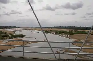 The Save River, or Sabi River (Portuguese: Rio Save) is a 400 mi (640 km) river of southeastern Africa, flowing through Zimbabwe and Mozambique.[4][5] The river has its source in Zimbabwe, some 80 km (50 mi) south of Harare, then flows south and then east, from the Zimbabwean highveld to its confluence with the Odzi River. It then turns south, drops over the Chivirira (“Place of Boiling”) Falls, and flows down the western side of Zimbabwe's Eastern Highlands forming a dry river valley in the rain shadow of these mountains. It is joined by the Runde River or Lundi at the Mozambique border, forming a dramatic confluence at Mahenya. It then crosses Mozambique to flow into the Indian Ocean at about 21°S.