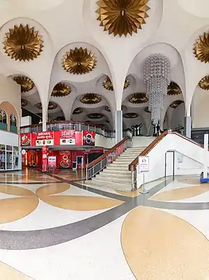 Designed by architect Chira Silpakanok, the building is late-Modernist in design with interior decorations in the Art Deco style. A grand staircase dominated the interior, illuminated by a huge Italian chandelier. The cinema received the ASA Architectural Conservation Award in 2012.[8] The building's future is uncertain as Chulalongkorn University, owners of the property, searches for a new tenant.[9] The Scala hosted film festivals such as the Bangkok International Film Festival, the Silent Film Festival,[10] and was itself the subject of a documentary film shown at the Salaya International Documentary Film Festival in 2016.[11]