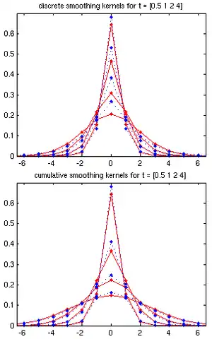 A more refined approach is to convolve the original signal with the discrete Gaussian kernel T(n, t)[1][2][3]