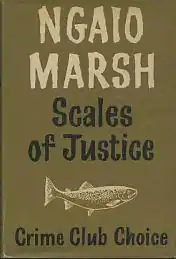 Scales of Justice is a detective novel by Ngaio Marsh. it is the eighteenth novel to feature Roderick Alleyn, and was first published in 1955. With a classic 'Golden Age' crime novel's setting, in the idyllic, self-contained, rural English community of Swevenings, the suspects all members of a tight-knit social group revolving around the local baronet and his family (the Lacklanders), the plot concerns the brutal murder of Colonel Carterette, an enthusiastic fisherman, who is preparing for publication the deceased squire's memoirs, which include the admission that as a high-ranking diplomat before World War Two, the baronet had treasonably put class before country in what has been called the Herrenvolk heresy, and knowingly let a young member of the embassy staff take the blame. The young man in question, who idolised the Lacklander ambassador, had committed suicide and his eccentric father is now the murdered colonel's neighbour.