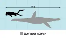 Based on the size of its fossils and comparisons with the proportions of other plesiosaurs, Scanisaurus probably reached 4–5 meters (13–16 ft) in length.[12]