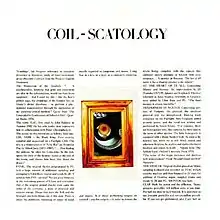 - ↑ Gill, John (January 30, 1985). "Coil 'Scatology' (K422/Rough Trade)" (scan). Time Out. Retrieved March 16, 2018 – via Brainwashed archive.