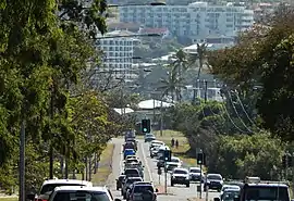 After proceeding south-east for about 350 metres it crosses Ross Creek and passes between Cooee Bay (to the east) and Taranganba (to the west) It then proceeds through Lammermoor, running beside the beach for about 1 km before reaching Rosslyn. Where it enters Rosslyn the road is cut into an ocean-front cliff-face near Statue Bay. This section of road was closed from 20 February 2015 until 26 July 2018 due to a landslip caused by Cyclone Marcia.[3] A temporary detour through suburban streets was in use throughout the closure.[4]