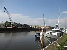 Lancaster | Due to the difficulty of navigation up the River Lune to the docks in Lancaster, the port commission decided to build a dock at Glasson, which opened in 1787. Several additions have since been made: a link was constructed to the Glasson Branch of the Lancaster Canal in the 1820s, a Graving Dock was built in 1837, and the East Quay was extended to accommodate the Glasson Dock branch line after 1880.[69][70] The late 18th-century lighthouse on the East Quay and former custom house on the North Quay are also Grade II listed.[71][72] |