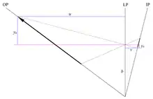 - ↑ The example here uses Merklinger's approximation. For small values of tilt, sin θ ≈ tan θ, so the error is minimal; for large values of tilt, the denominator should be tan θ.