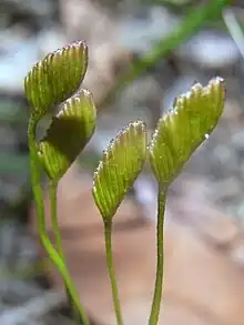Species are mainly distributed in the tropics, but several are found in temperate regions in North America, South Africa, Australasia and Northeast Asia.[5][6] The sporangia are borne on specialised pinnae, distinct from ordinary vegetative pinnae. The pinnae form small comb-like, pinnate structures on which the sporangia are formed.