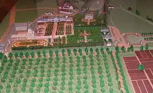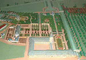 In 1720, Josep Charles (1694-1729), hereditary prince of Sulzbach constructed a summer palace in Oggersheim.[1][2][3] In 1729, a baroque Loreto chapel was added in the palace gardens.[3] When prince Joseph Charles passed away in 1729, the palace was not used for 22 years until 1752, when Count palatine Frederick Michael of Zweibrücken-Birkenfeld (1724-1767) turned Oggersheim into his summer residence.[1][2] With help of the architect Nicolas de Pigage (1723-1796), he fully reconstructed the palace between 1752 and 1757.[1][2] In addition, a large baroque garden in French style was created, including various pavilions, bath houses as well as a large orangery.[1][2][3]