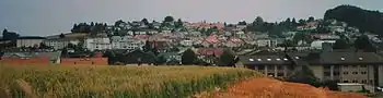 Against the opinion of the municipal council of Düdingen, the council of Fribourg decided on 21 November 1922 to declare for Schmitten the status of an independent political community.[5] A further enlargement of Schmitten took place in 1976 when the neighbouring community of Wünnewil-Flamatt gave a residential area of 29 hectares north of the train station to Schmitten.