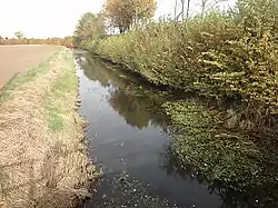 The Schwarzer Graben springs south of Rietberg.[1] It discharges southwest of Mastholte, a district of Rietberg, from the right into the Glenne (which is upstream still called Haustenbach).[2]