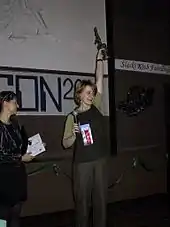 Anna Brzezińska at the Janusz A. Zajdel Award ceremony at Polcon 2001 in Katowice.