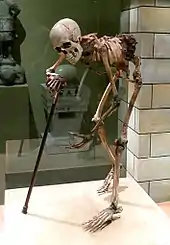 Scoliosis may be a byproduct of strong selection for bipedalism. For a bipedal stance, a highly mobile, elongated lower spine is very beneficial.[117] For instance, the human spine takes on an S-shaped curve with lumbar lordosis, which allows for better balance and support of an upright trunk.[118] Selection for bipedality was likely strong enough to justify the maintenance of such a disorder. Bipedality is hypothesized to have emerged for a variety of different reasons, many of which would have certainly conferred fitness advantages. It may increase viewing distance, which can be beneficial in hunting and foraging as well as protection from predators or other humans; it makes long-distance travel more efficient for foraging or hunting; and it facilitates terrestrial feeding from grasses, trees, and bushes.[119] Given the many benefits of bipedality which depends on a particularly formed spine, it is likely that selection for bipedalism played a large role in the development of the spine as we see it today, in spite of the potential for "scoliotic deviations".[117] According to the fossil record, scoliosis may have been more prevalent among earlier hominids such as Australopithecus and Homo erectus, when bipedality was first emerging. Their fossils indicate that there may have been selected over time for a slight reduction in lumbar length to what we see today, favouring a spine that could efficiently support bipedality with a lower risk of scoliosis.[117]