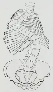 - ↑ Kouwenhoven JW, Castelein RM (December 2008). "The pathogenesis of adolescent idiopathic scoliosis: review of the literature". Spine. 33 (26): 2898–2908. doi:10.1097/BRS.0b013e3181891751. PMID 19092622. S2CID 19749217.
