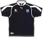 Since their first match Scotland have always played in royal blue, with a royal blue shirt, shorts and socks. In their two World Cup qualifying matches in 2007, the Scottish flag, featuring the white cross on a blue background, was on each shoulder and also on the shirt was a white collar.[104] On the left of the shirt is the Scotland badge, and on the right is the Great Britain badge which is split into four and then has the England, Scotland, Wales and Ireland rugby league badges in a shield.[105] This is to signify Scotland's part in the Great Britain setup.